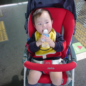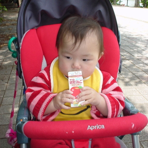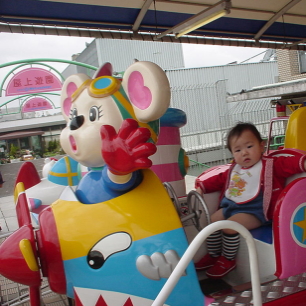 小さい頃、屋上の遊園地で遊ばせてもらったのを思い出して、ぱるぱるを連れて行ってみた。そろそろ乗り物にも乗れそうだし。松坂屋の屋上は最近のデパートの中じゃ1番きれいね。1回200円かぁ〜と思いながら、いくつかの乗り物に乗せてみた。まだ興味をもって喜ぶには早かったかな? ちょっと不安そうな顔で揺られているぱるぱる。でも1歳すぎるとそれなりにお座りして乗っているんだなと、感心しちゃいました。