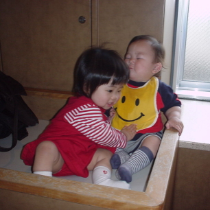 今日はあーやんとデパートへ行きました。あーやんはぱるぱるを触りたがってしょうがない。(笑) 「いい子いい子」や「好き好きぃ〜」と抱っこしてくれるんだけど、ぱるぱるはそんなあーやんに戸惑い気味。(笑) この二人、店員さんたちには男の子と女の子の赤ちゃんにしか見えないらしい。