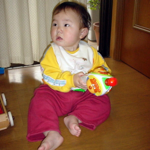 ぱるぱるは今、ボタンがいっぱいついていて音が出るおもちゃが大好き。普段もケータイやリモコン、PCのキーボードなんかがお気に入り。おもちゃ売り場に行っても、すぐにそっちの方に行ってしまう。基本的に私はプラスティックのおもちゃはレゴ以外きらいなので、買いたくないのね。わりと昔ながらの古風なのが好きなもので・・・。