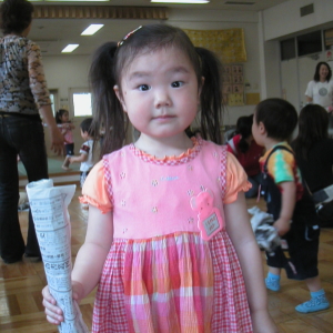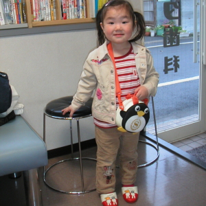 ハルカには、ママと離れちゃったり、ハルカがどこか知らないところに行っちゃったときにこの唄を歌うと、ママのところに戻ってこられるおなじないの唄だと教えてあります。ちなみに唄の1番が住所で、2番は電話番号になってます。1日1回、忘れないように歌わせています。ハルカはもちろん、1番2番の歌詞の意味なんてわかっていません。最近はこんな唄で無事に帰ってこられるかどうか不安になっちゃうような事件がたくさん報道されているので、気休めという感じもしますが。とりあえずちょっとだけ安心。
