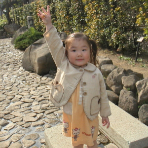 ハルカに自宅の住所や電話番号を覚えさせることに成功しました。1週間くらい前からやっていたんです。最初、文章だけでやろうとしましたが、ぜんぜんダメ。そこで、でたらめな曲なんですが、フシをつけてやってみたら大成功。その名も「おまじないの唄」です。(笑)