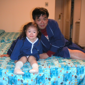 エレクトリカルパレードは秘密の場所でゆったり鑑賞できましたが、今回も上空の大気が不安定ということで花火は中止。残念・・・4回くらい連続でフラれてます。花火が中止なので、少し早めにホテルに入りました。お部屋はお子様仕様のオーシャンドリームルーム。前にこのタイプのお部屋に連れてきたのは1年以上前だったのに、しっかり覚えてたハルカ。お部屋に入るなり、「ハルちゃんのパジャマに着替えるんだ。」と、お子様パジャマに着替えて、よしよし、今日は疲れたからもう寝るのね?と思ったら、お子様階段やらベッドの上で1時間以上遊びつづけました。