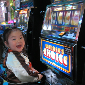 今日は、ハルカがキープしているホテル内のゲーセンのコインでスロットしたりして遊んだあと、これもお約束どおり水上バスで帰ってきました。ところで、博才のあるハルカ。行くたびにコインがどんどん増えちゃいます。もちろん換金なんてできないので、ただ遊ぶだけなんだけどね。思いっきりスロットがヘタなパパが、どんどんすってるのに、ハルカがガバガバ出してくれます。マジでラスベガスにでも連れて行こうかと、私は密かに企んでいます。