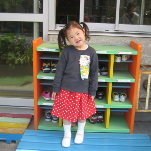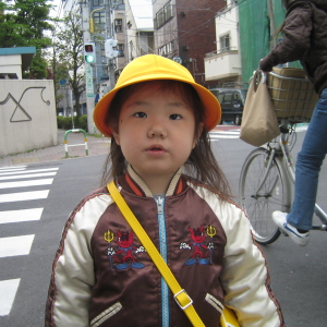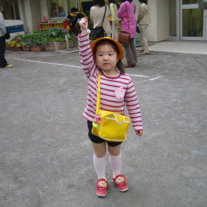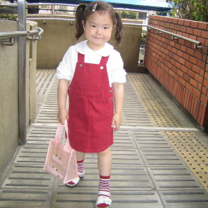 幼稚園に送って行って、PTAの総会について他の役員さんと話ていたら、どっからか、「ママ〜ッ!」という声。振り向くと、ハルカが妙なスカートをはいています。「ミニーちゃんのスカートだよ。」と自慢気。他にもピンクのドレスやアンパンマンのマントらしきものが教室に置いてあって、自由に着て遊んでいいらしいです。ミニーに変身して踊りながら教室に戻っていきました。