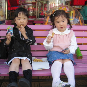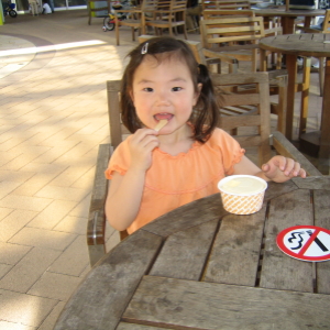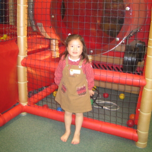 汗だくで、おすべりをして、気分が晴れたハルカ。「ママ、ノドが乾いちゃった。おなかもすいた。なんか食べて帰ろうよ。」