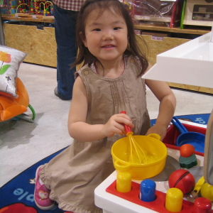 右)アカチャンホンポのお遊びスペース。1時間預かってくれるので、私も助かります。