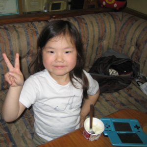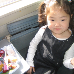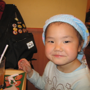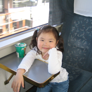 ハルカは疲れてしまって、駅に帰るバスの中で爆睡。駅についても起きてくれません。これじゃ連れまわせないので、近くの喫茶店に入って、私達がお茶している間、寝かせました。小1時間寝かせたのですが、それでも起きることができません。珍しい。病気ではなさそうだけど、よっぽど疲れちゃったのね。