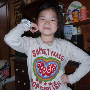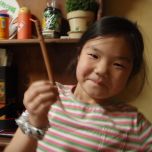 あさって、学童クラブでコンサートをやるとか言って、小道具作りに余念のないハルカ。お友だちと「きらりんレボリューション」のキャラになりきって、小さい子たちの前で歌や踊りを披露するそうです。トイレットペーパーに芯を使って、上手にめがねを作りました。ほほ〜。上手だね。こういう才能はスゴイと思うよ。