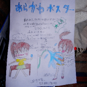 お絵かきしたら?と言ってみたら、ポスターを作ると言い出し、友だちを遊びに誘うポスターを作り出しました。