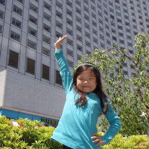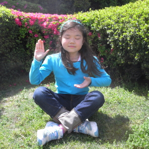 ハルカがいきなり「これで写真撮って!」と芝生に座り、なにやら悟りのポーズ。面白いこと考えるなぁ。いったい何を悟ったのか。