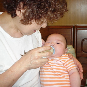 右)おばあちゃんにミルクを飲ませてもらっているぱるぱる。すごい態度のデカさ・・・。