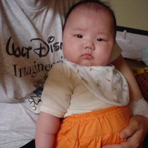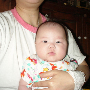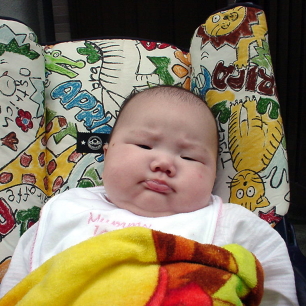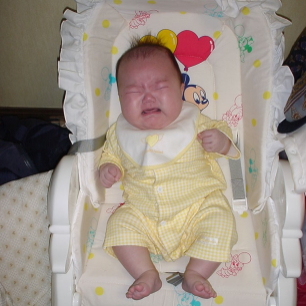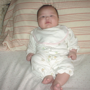 どーだい、大きくなったでしょ。(笑)・・・あれ、タカちゃんの顔の大きさとぱるぱるの顔の大きさ、あんまり変わらないじゃん。げげぇ〜っ!! タカちゃんの赤ちゃんの時によく似ているのよね、ぱるぱる。そう言われてうれしいのかうれしくないのか、タカちゃんは複雑らしい。「タカちゃんの赤ちゃんの時によく似ている。」の後に必ず「あんまりかわいくなかったよね。」が付くかららしい。おいおい、じゃなにかい? うちのぱるぱるもかわいくないと言いたいのかい?(笑) ん〜、確かにぱるぱる、お目々パッチリの「かわいい赤ちゃん」っていうのとは、キャラが違うからなぁ。でもいいの! ぱるぱるはかわいいの!!