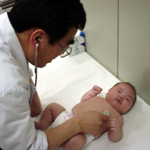 右)小児科部長の瀧川先生に診察してもらってるところ。