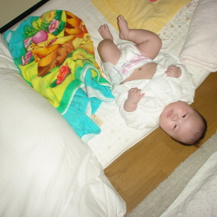 もうすぐ寝返りうつようになるかな? まさかね・・・。