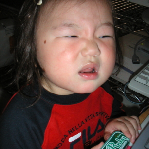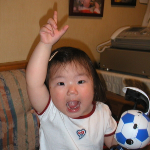 ぱるぱるは人を笑わすのに命をかけているんではないかと思うときがあります。(笑) 電車に乗ると前に座った人を笑わそうと一発芸をいきなり連発します。あくまでもぱるぱるが自分の意志で勝手にやっているんですが、まさか2才の小さい女の子が一人でそんなことをするとは誰も思わないので、まるで私が仕向けてやらせているように思われるのが困りモノです。