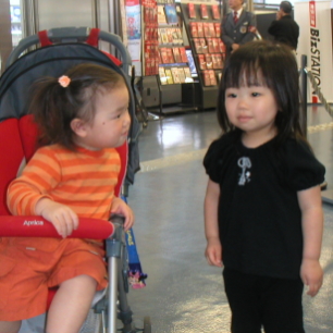 今日はごはんを食べて、お風呂に入ったあと、中途半端にお昼寝(?)して目が覚めちゃったので、寝ぼけて大泣き。なんとか泣きやんだものの、落ち着きがなく寝そうになかったので、セブンイレブンにでも連れて行こうとしたら、急に「ルーちゃんちに行く!」と言い出してきかなくなっちゃった。ルーちゃんは私のPCのお弟子さんでもんじゃ屋さんをやっているおうちののワンワンです。どう考えて営業中の忙しい時間帯なんですが、どうにも手がつけられないくらいに熱望するので、しかたなく連れて行きました。裏口からお邪魔して住居部分の2階へ。