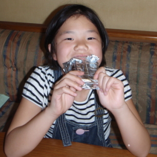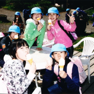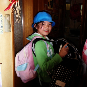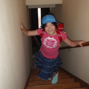学校から走って帰ってきたと思ったら、おやつを持って出かけていきます。
