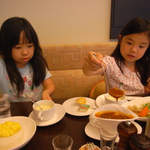 薄曇り時々晴れ(27.6/19.5)お昼、あーやんのママとホテルのレストランで待ち合わせしました。ランチを食べてお別れです。ハルカは、次は自分が泊りに行く番だとワクワクしているのですが、あーやんのママ、仕事があるしな。夏休み中に泊りに行けるといいね。