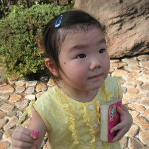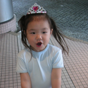 ROXで小さい王冠を見つけたので、買ってあげました。さっそく頭につけて、ミュージカルのスタートです。