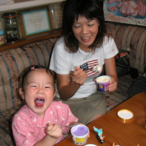 行く前に「でぶやが来るの?」なんて言うから、「ハルちゃん、でぶやじゃないよ。石塚さんっていうお名前なの。石塚さんって呼んでね。でぶやはダメよ。」と、教えました。ちゃんと、「いしづかさん」って、呼んでましたよ。