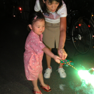 タカちゃんと一緒に花火したり、スーちゃんにロケット並の急上昇高い高いをやってもらって、いつまでも興奮していました。