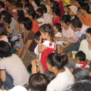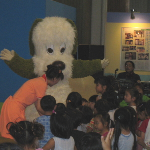 ショーが始まるのでイベント会場に戻ると、いっぱいながら、ハルカが入れそうなスペースがところどころ空いています。私まで入っていくわけには行かないので、ハルカにちょっと入れてもらうようにしなさいと言って、スペースに入れました。最初は私の方を気にして、ちらちら見ていましたが、ワンワンが登場すると、もう夢中です。あれれと思っているうちに、ハルカは1番前のセンターに。なんてやつだ! ちゃっかりしてるな。