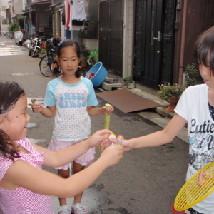 遊んでいたハルカたちにチュッパチャップスを持っていったら、味の好みでジャンケン開始。