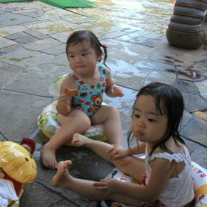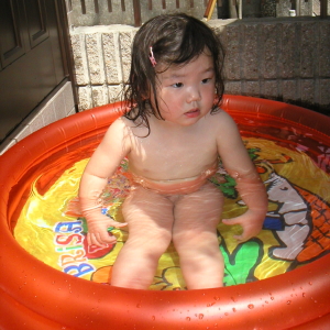 ジャブジャブ池、小学校の高学年の子も来ているんだけど、私としては、ここにこさせるのは今シーズンが最後かなと思っています。更衣室がないので、ベンチで着替えさせているんだけど、3才を過ぎたら、ちょっと考えもの。怪しいやつも何人か発見しちゃったし。来年はちゃんとしたプールに連れて行こう。