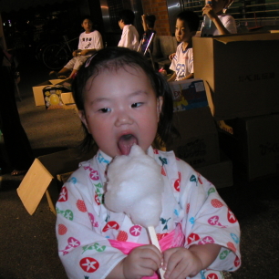 小学生に混じって、輪投げに挑戦したぱるぱる、チビのくせにいい肩してるじゃん。おもちゃをゲットしてくれました。綿菓子食べて、ワンワンを買って、やっと縁日らしいことができてよかったね。