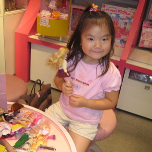 そうですか、とにかく人形で遊びたいのね? えんえん1時間半、遊んでいました。私を仲間に入れてくれるわけでもなく、他の子たちと遊んでいるので、私はつまらないったらありゃしない。「おなかがすいたでしょ? ごはんを食べに行こう!」といって、ようやく出ることができました。