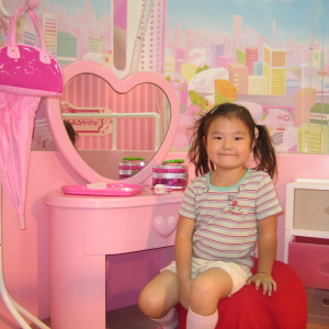 入口でさっそくリカちゃんのドレスを着て、写真撮影ができるスタジオのイベントへのお誘い(当然別料金)があって、おもしろいからお願いしました。