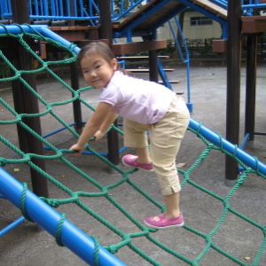 右)ロープを上ったりするのは、好きみたい。ガンガン上ります。