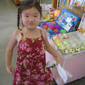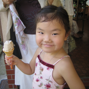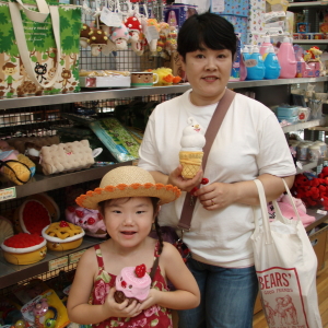 石フリークのハルカは、石屋さんをみつけて、私に「買っちゃダメ?」と、熱望。「おうちにいっぱい石、あるでしょ?」と言う私の横で、叔父ちゃんがハルカにビンつめ放題をやらせてくれました。ハルカはキレイな石を吟味してビンにつめ、ご満悦。モカソフトと石で叔父ちゃんラブラブ状態。あぁ、単純なやつだ。(笑)