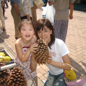 右)タカちゃんのお顔よりも大きいマツボックリ、すごいね。