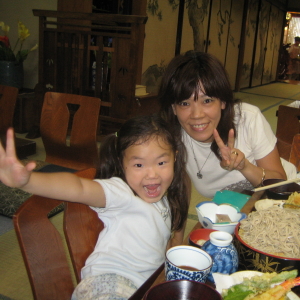 参拝のあとは、信州そばを食べに行きました。ハルカと一緒に食べるからと、私は「大天もり」をとりましたが、その量の多さにビックリ! 普通の「天もり」が「大天もり」だもん。一般的なおそばやさんで言うと、ザル2枚はあったね。だけど、そば好きのハルカは、ペロリと1枚分を食べて、2人でなんとか完食。おそばだとよく食べるね。