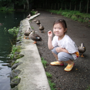 左)「カモさんおお散歩だよ。」