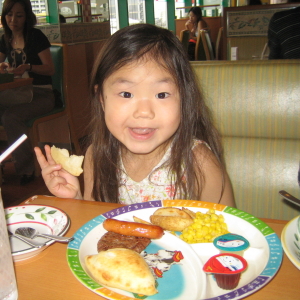 さらに長野の駅前でロッテリアを発見したハルカ。「ふるポテ食べた〜い。」という始末。ウソでしょ? さっきあんなにおそばを食べたのに、まだ入るの? ダメという私の横で、ハルカの救世主、叔父ちゃんがふるポテを注文。叔父ちゃん、ハルカを甘やかさないでくださいよ。ハルカはニコニコ。「オジちゃん、大好き♪」だってさ。