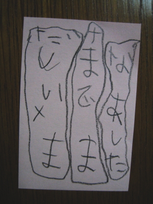 「ママ あした しままいで(死なないで)」だって。下から書くな。(笑)