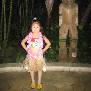 左下)夜のポリネシアンショーは、お約束のコスプレで。