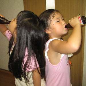 あーやんはスイミングの日には、オロナミンCを飲んでから行くのがお約束のようで、ハルカも生まれて初めてオロナミンCを飲ませてもらいました。