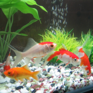 ちび金魚たちには水槽が大きく感じるけど、このくらいがいいのかな? 金魚もうれしそうに泳いでいるような感じ。