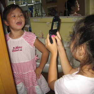ケータイは音楽も聴けるし、写真も撮れるので、小さい子たちにはあこがれのグッズです。おもちゃのケータイとは違って、本物ならではの高性能だもんね。今日は2人で写メを撮りっこして遊んでいました。