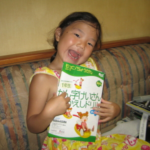 夏休みの宿題とあわせてやっていたチャレンジ1年生。基本のテキスト2冊のほかに夏休み用の繰り返しドリルもやらせていましたが、今日全部終わりました。
