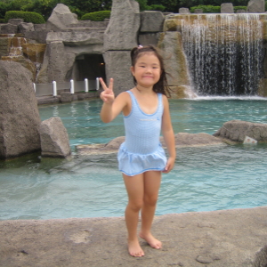 お昼ごはんをヒルトンの「王朝」に食べにいった後、ハルカと約束をしていた通り、ホテルのプールに行きました。お外のプールに入るというハルカ。寒いので室内プールにしようと言ったのですが、ハルカはききません。まぁ、そんなに入りたいなら、入ってみ。