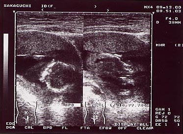 今日、はじめてベイビーの心音を聞かせてもらいました。大人の倍の速さで蒸気機関車のような音だったよ。相変らず、私のベイビーはちっともじっとしてくれなくて、ナイスショットな写真が撮れません。もうだいぶ大きくなったんで、1枚の写真に全体が写らなくなってしまいました。