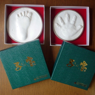 そろそろ乾燥しただろうと、この前高島屋で採取してきたぱるぱるの手型・足型の石膏のお掃除をしました。