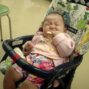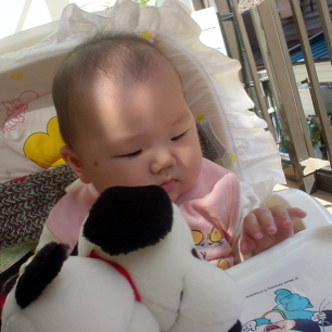 ぱるぱるは口が聞けないだけで、実は物事をもうすべて理解できているんじゃないかと思う瞬間があります。起きている時は、ぼぉ〜っとしていることがほとんどなくて、常になにかを観察してるの。夜も眠くてまぶたがくっついてるのに、まだまだ起きていたいらしくて、がんばっています。まだ人生始まったばかりなんだから、ゆっくり生きようよ。と言ってきかせてるんだけどね。(笑)