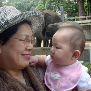 右) ばあばとゾウさんを見に行きましょうね。