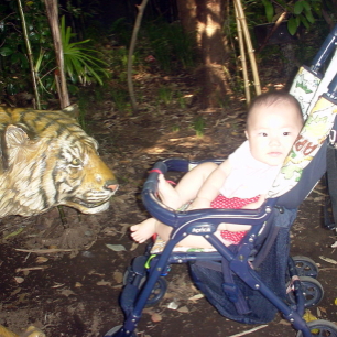 ぱるぱるには動きがないものと、背景が動物の色と似ているものはわかりにくいみたいね。だから、動物園の花形の「サル山」も無表情。」ツルとかペンギンを見せても反応なし。そこいくとゾウさんとかゴリラ、トラなんかは大喜び。中でもクマが大好きなのには驚いた。抱っこして見せてあげると、両手両足をバタバタさせてのリアクション。