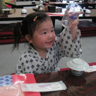 ここの健康ランドは浴衣でした。ぱるぱるも子供用の浴衣を用意してもらって、バカボンに変身。(笑)